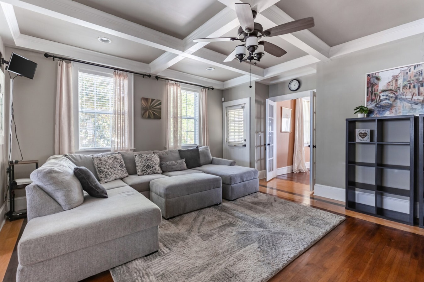 Relax and connect in two distinct living areas — one designed for movie nights with the Smart TV, the other for quiet reading or morning coffee.