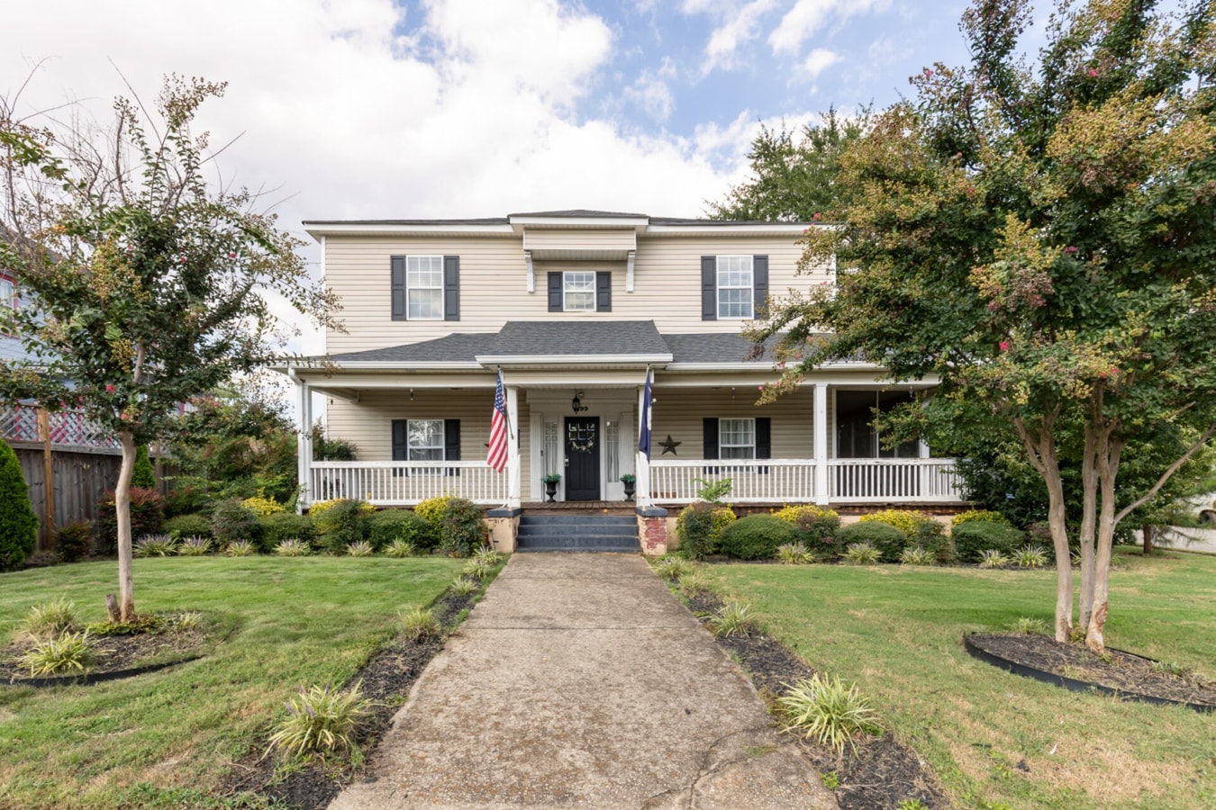 Enjoy your morning coffee or evening chat on the classic Southern-style porch, complete with rocking chairs and a peaceful view of the front garden.