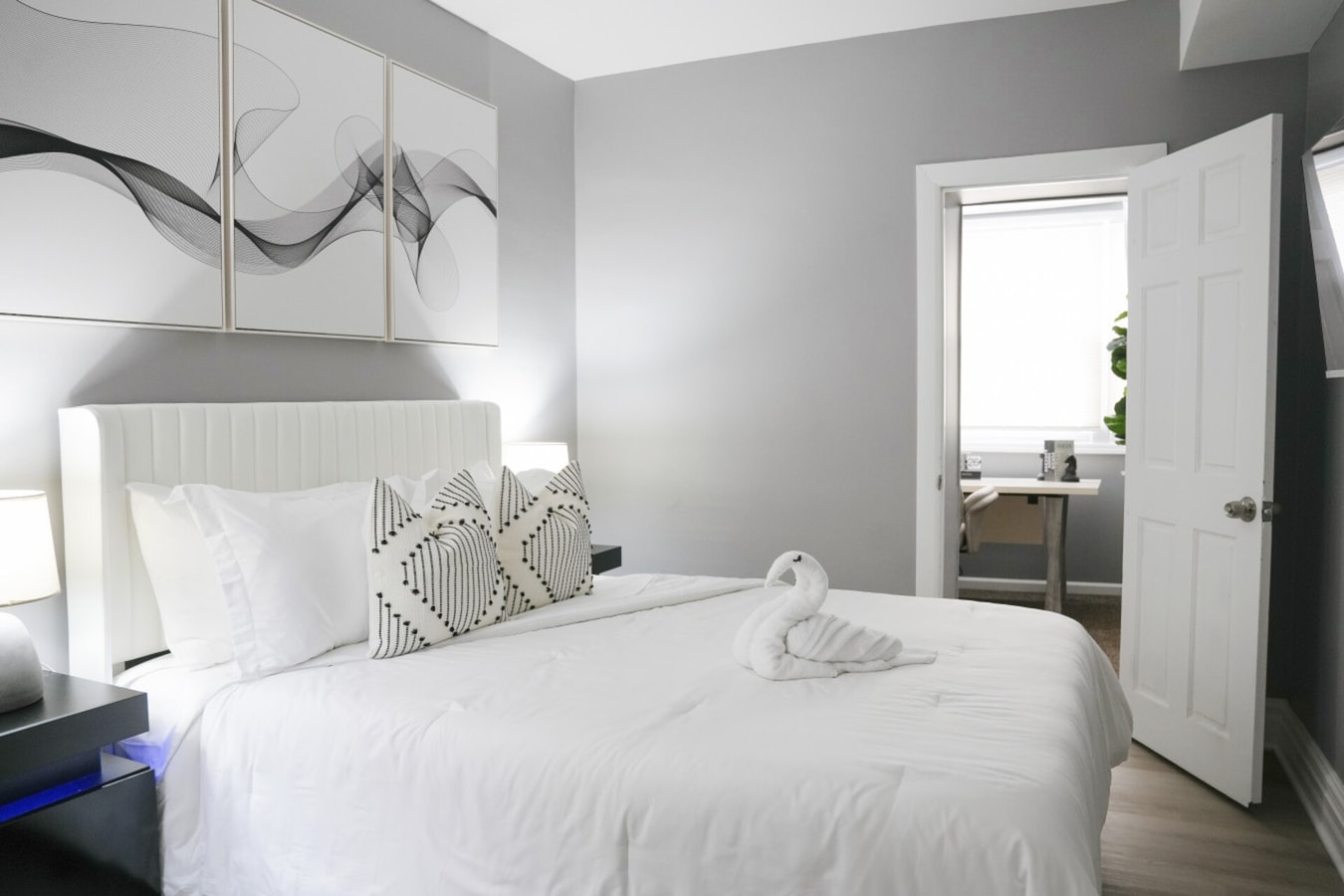 This charming 2BR unit offers the perfect blend of comfort and convenience. Located near beautiful parks and easy transit options, it’s ideal for families, couples, or business travelers. Relax in the inviting living space, cook meals in the full kitchen, and explore the best of Chicago just minutes from your door.