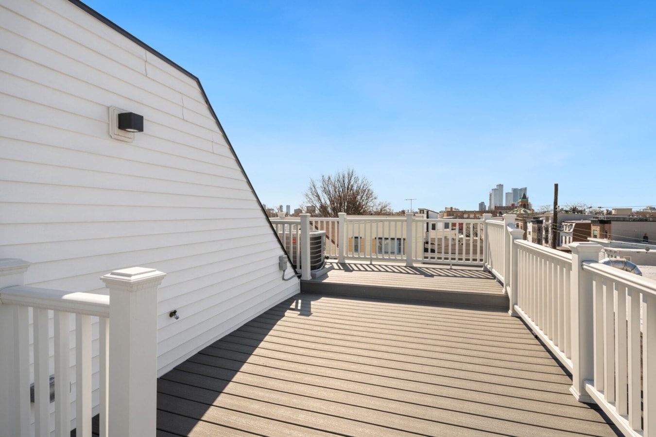Experience city living at its best in this bright and spacious 2-bedroom, 2.5-bath condo in the heart of Jersey City Heights. Nestled on a quiet street just steps from vibrant shops, parks, and public transit, this stylish home is perfect for families, couples, or business travelers. The highlight? A private rooftop deck offering sweeping views of the Manhattan skyline — the perfect spot for morning coffee, sunset dinners, or evening wine under the stars.