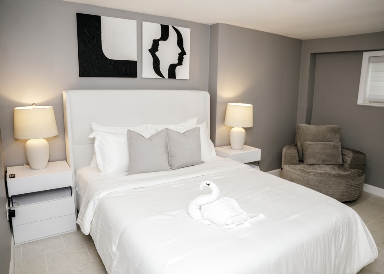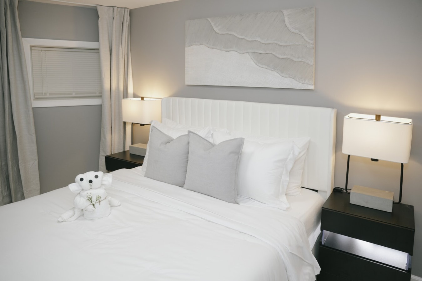 Find comfort in peaceful bedrooms that feel like your quiet urban escape.