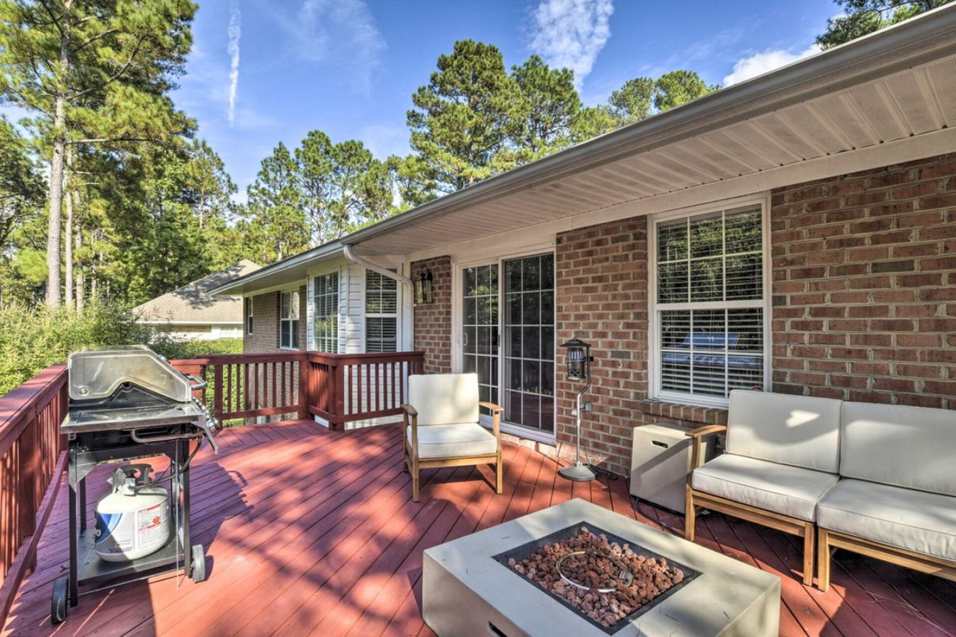 ▪️ Relax outdoors on the furnished deck with a fire pit, grill, and dining area