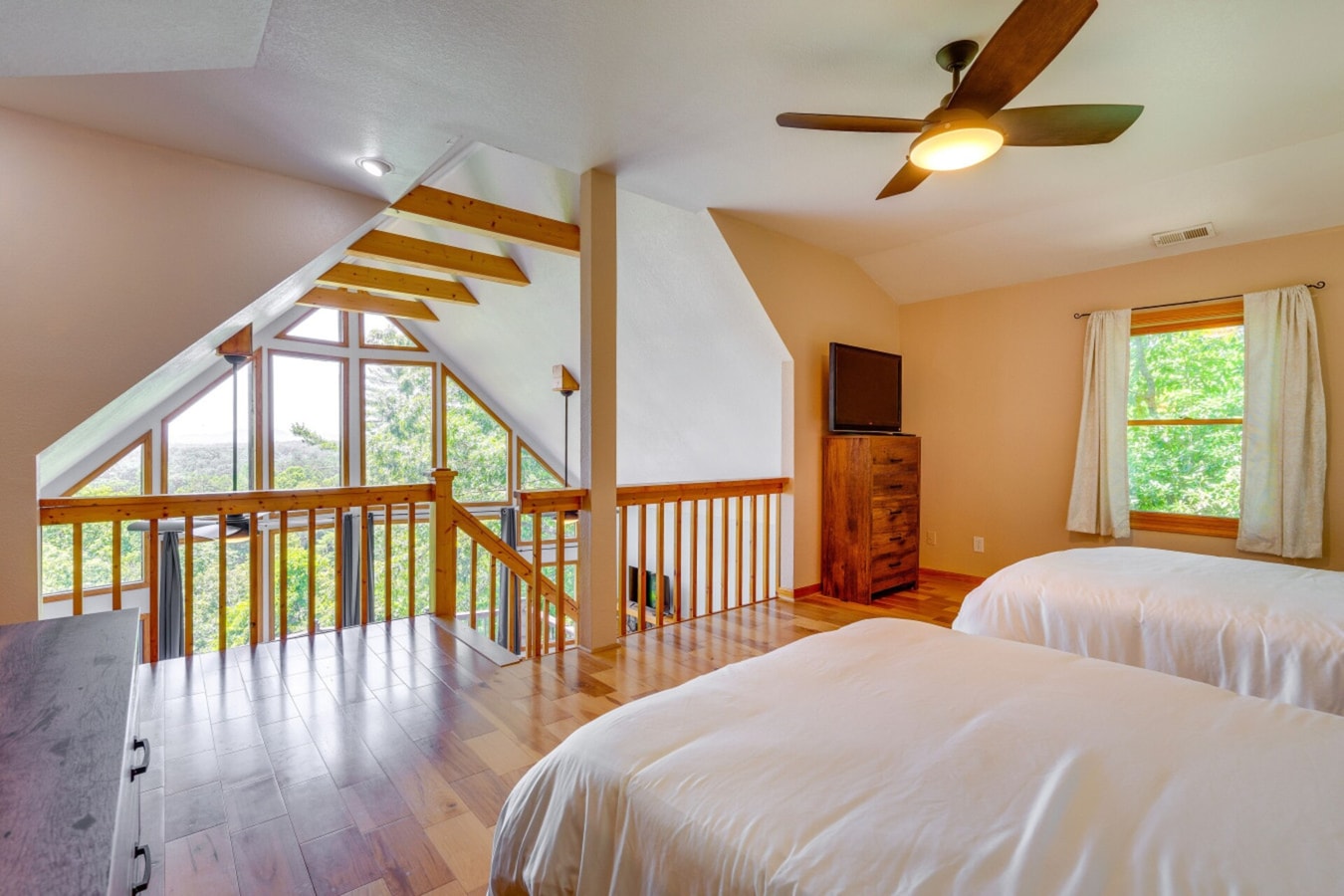Welcome to Hawk’s View Chalet—your cozy mountain escape in Murphy, NC! This 2BR/2BA retreat offers stunning Smoky Mountain views, a private hot tub, fire pit, and spacious decks. Inside, enjoy a fireplace, Smart TVs, high-speed WiFi, a fully equipped kitchen, and family-friendly amenities. Close to Lake Nottely, Nantahala National Forest, and Helen, GA, it’s the perfect blend of relaxation and adventure.