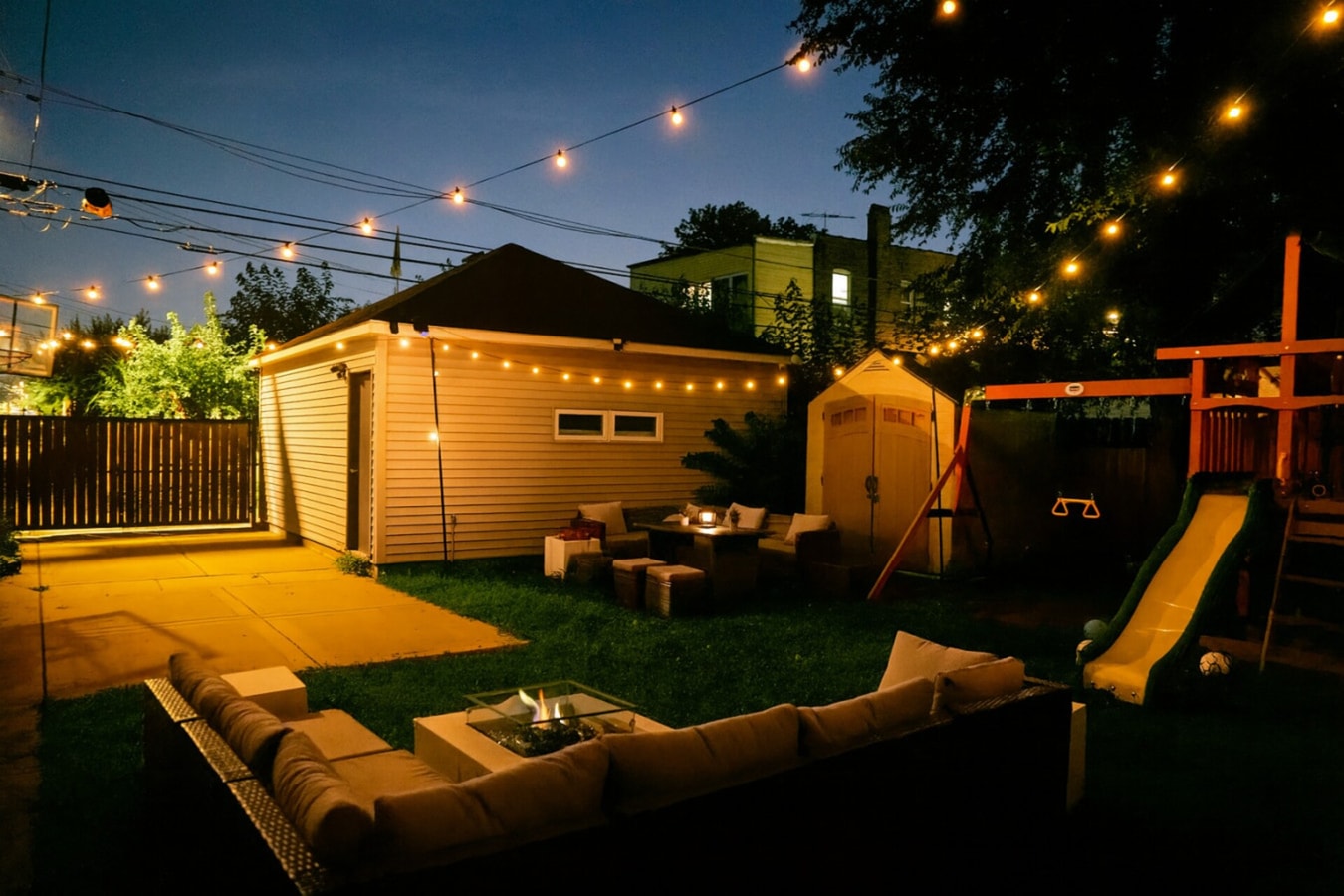 This playful Chicago hideaway mixes retro charm with cozy comfort. Fire up the arcade, challenge your crew to pool or foosball, then relax in the backyard under string lights while the kids explore the playset. Every corner, from neon-lit games to laid-back outdoor nooks, is crafted for connection, laughter, and easy living. Whether you're here to explore or unwind, this home brings the fun.