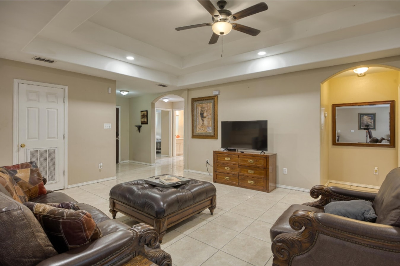 Gather around and relax in the cozy living area with plenty of seating and entertainment options for everyone.