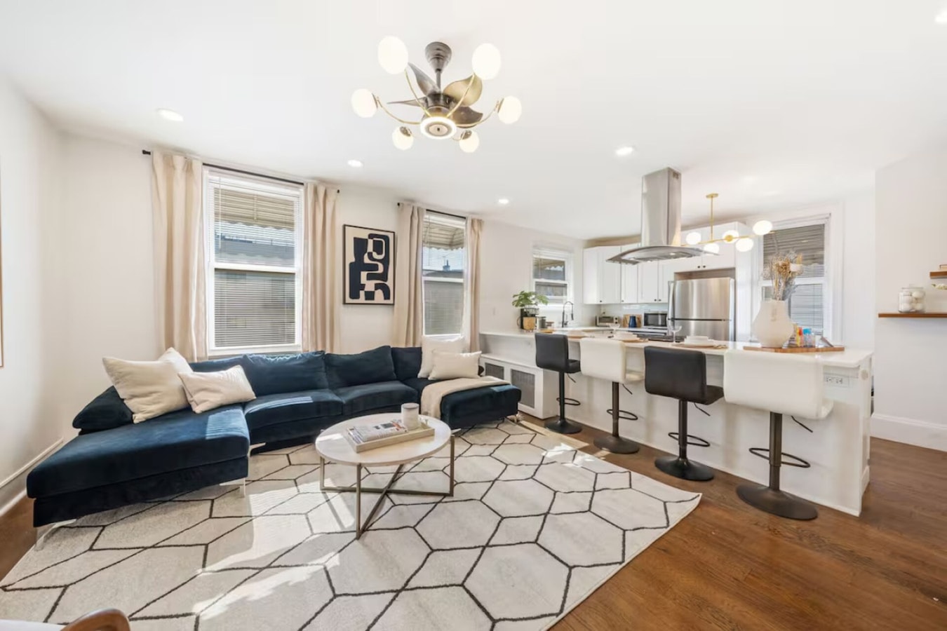 ▪️ Cozy living room with a smart TV, high-speed WiFi, and comfortable seating