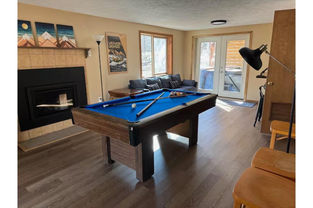 Entertainment paradise with pool table, foosball, Mortal Combat arcade, and cozy gas fireplace for tournament nights and memory-making!