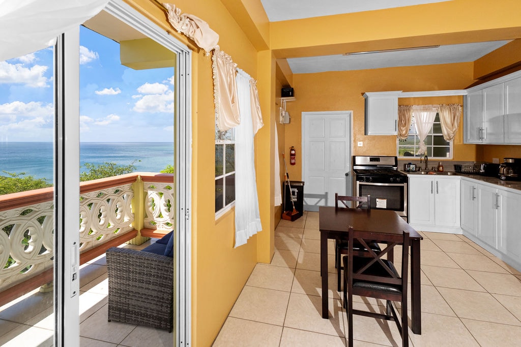 Unwind in the open-air lounge and balcony shared with one neighboring unit. Featuring cozy sofas, refreshing Caribbean breezes, and breathtaking sunset views, it’s the ideal spot to relax and take in the beauty of Vieux Fort.
