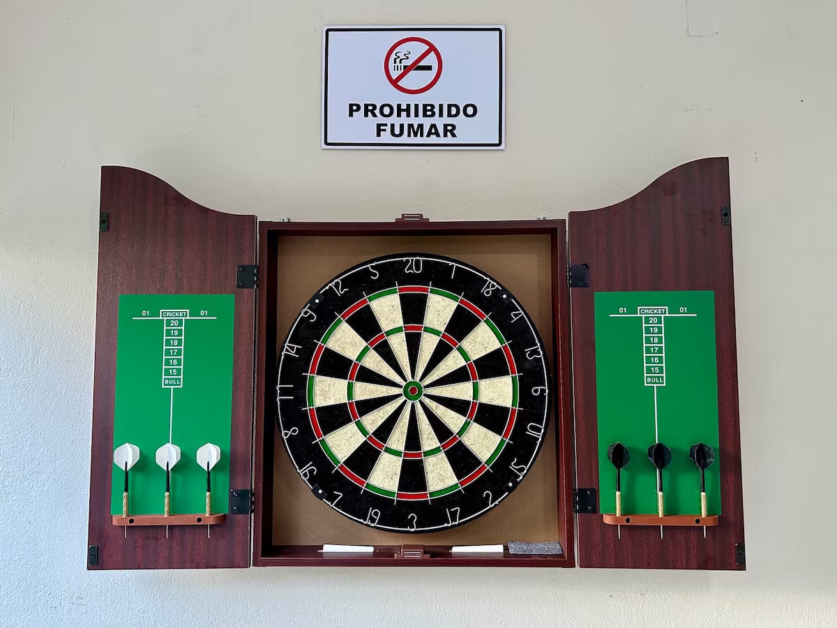 ✅ Game area rules: adult supervision required for anyone under 18. Dartboard access must be requested by an adult.