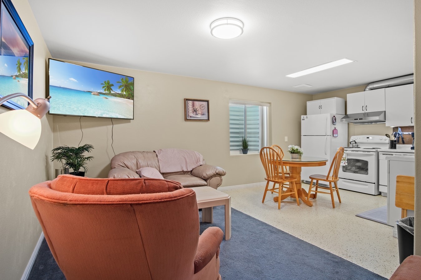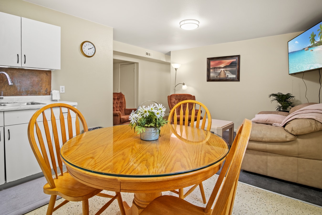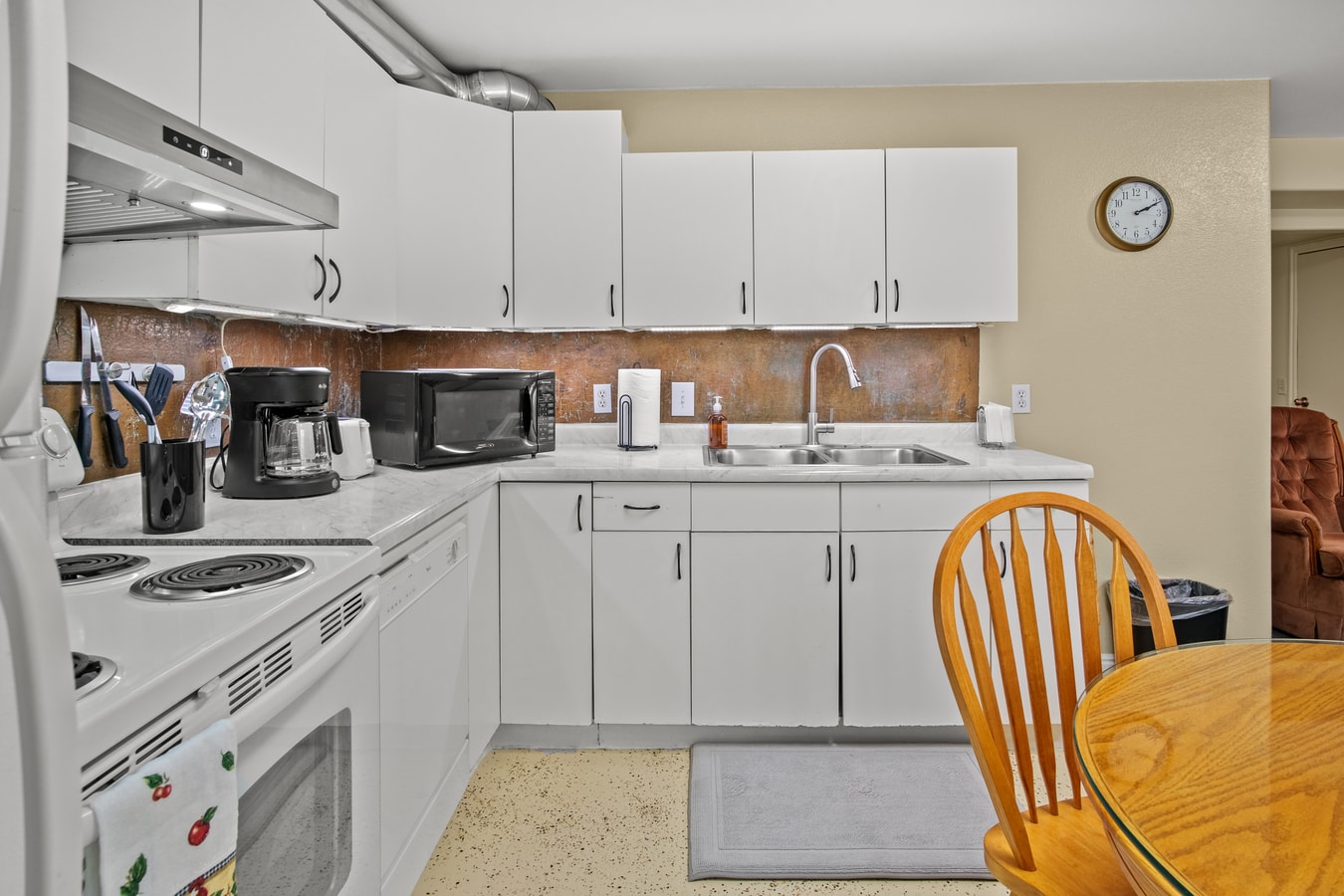 Enjoy the convenience of an equipped kitchenette perfect for basic cooking and quick meals. Whether you’re heating leftovers or preparing breakfast, the essentials are ready for your use.
