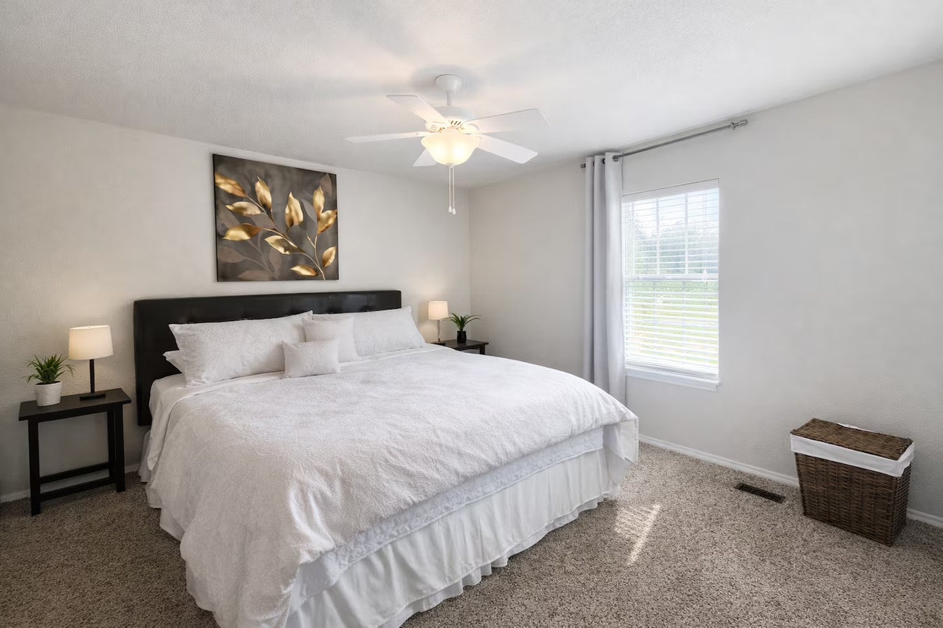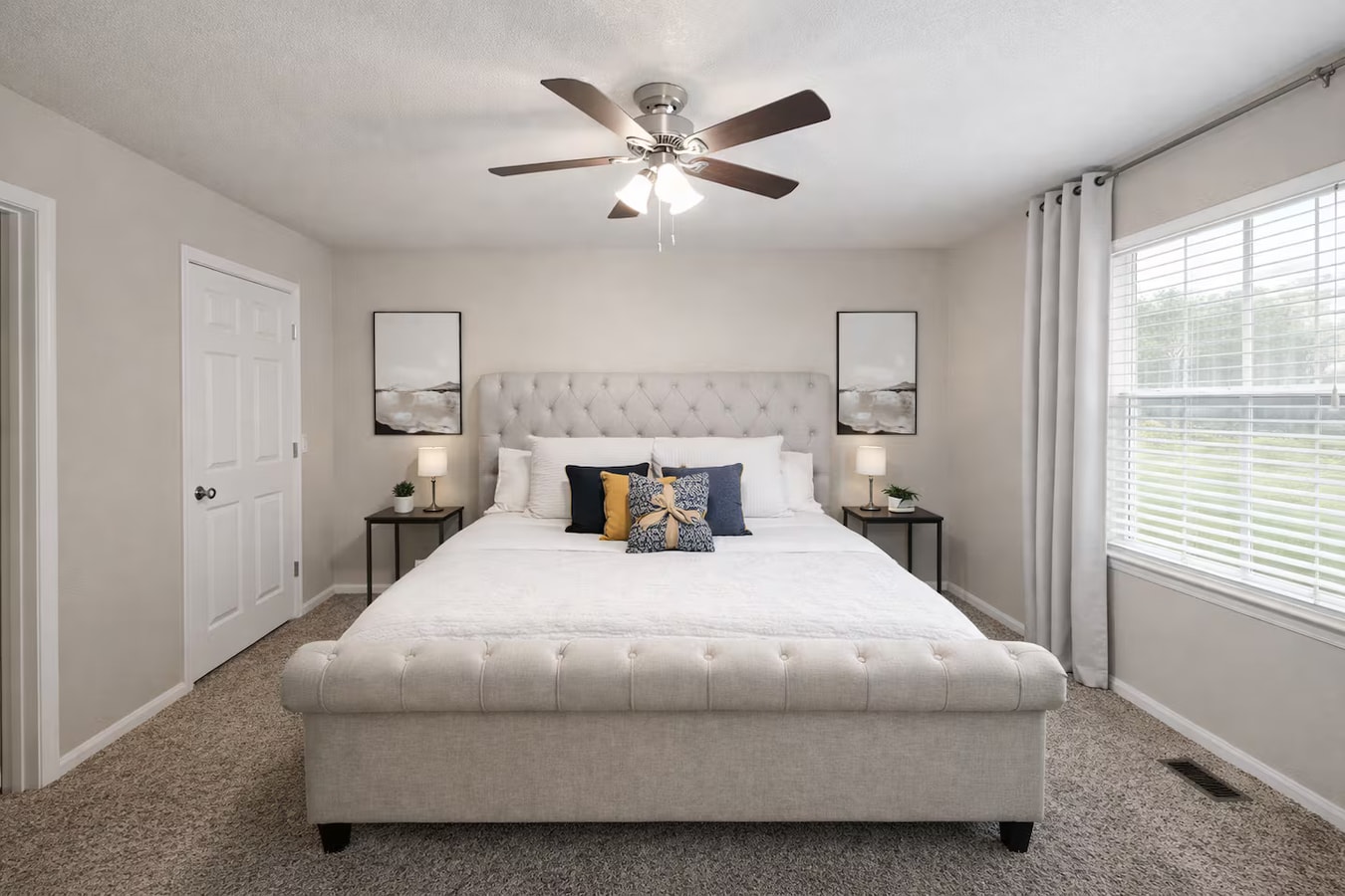 Drift off in comfort in one of three inviting bedrooms, each styled with soft neutral tones, blackout curtains and plush mattresses so everyone wakes up refreshed and ready to hit the trails, explore museums or work remotely in peace. Fresh linens, extra pillows and ample storage make it easy to unpack and feel right at home.