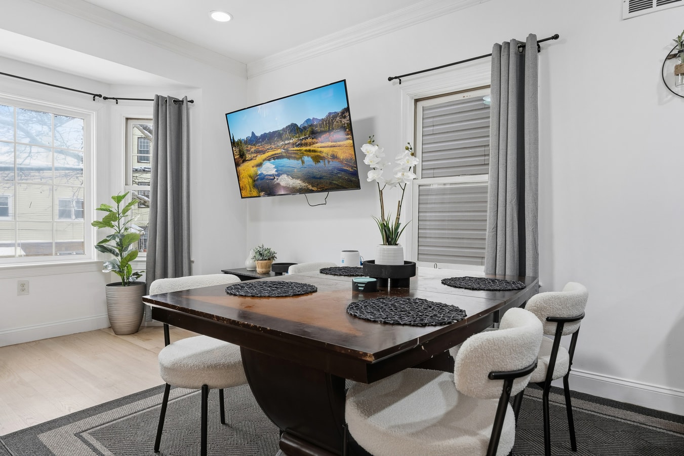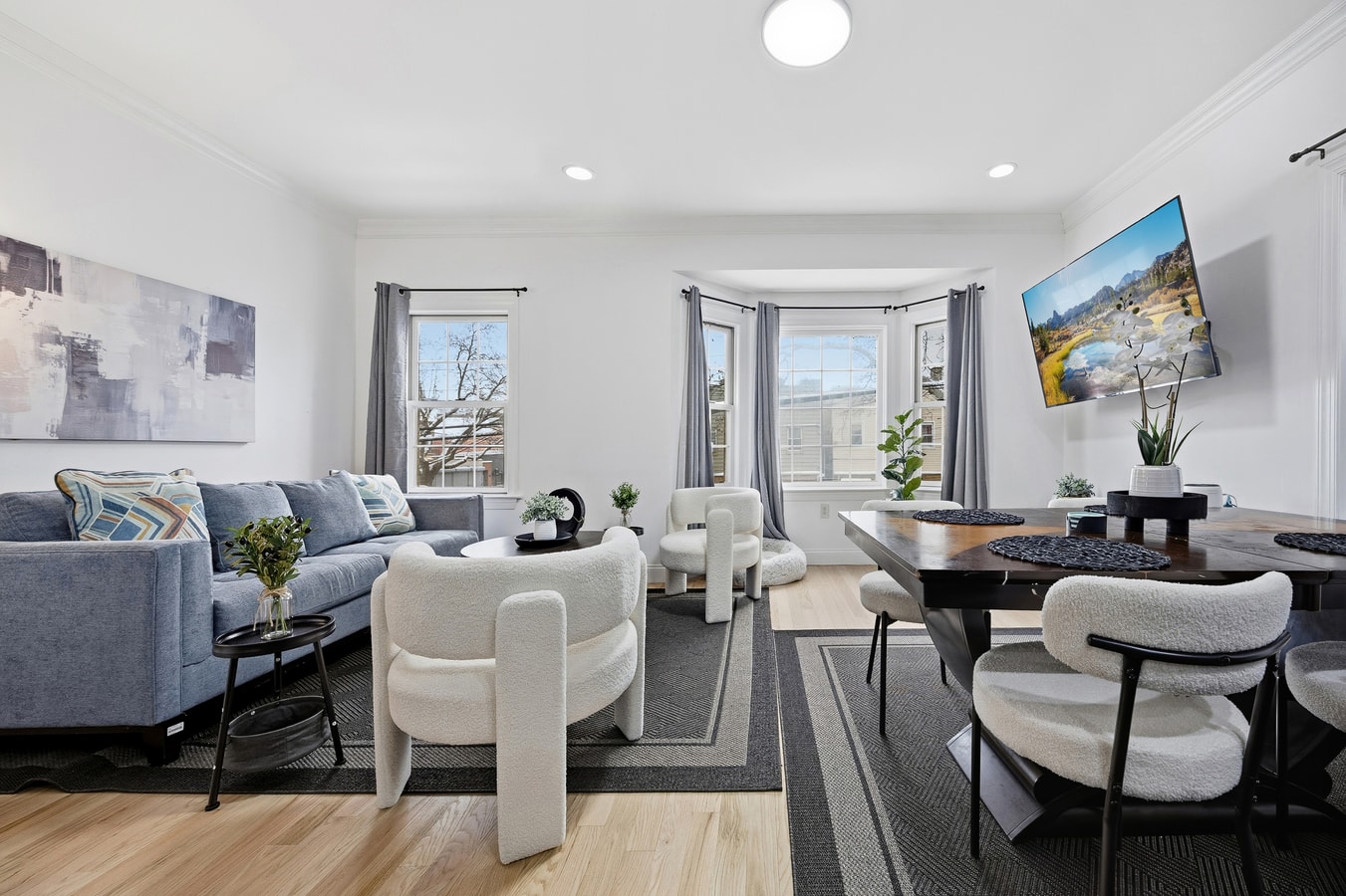 Designed for big groups, this 6 bedroom duplex features 2 full kitchens, 3 bathrooms, and flexible sleeping for up to 18 guests. Enjoy Smart TVs, in unit laundry, central AC and pet friendly comfort just minutes from transit, local parks, and everything Jersey City Heights offers.